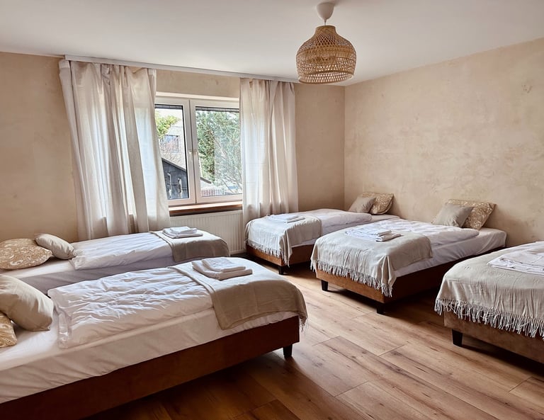 Pokój 5: 5 łóżek + łazienka zewnętrzna